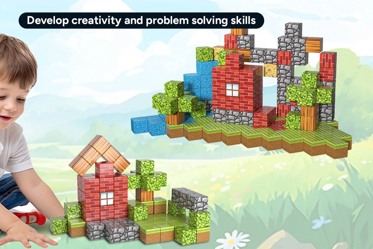 Each cube connects easily and securely through magnets, giving kids the freedom to build and experiment at will, while creating study structures.