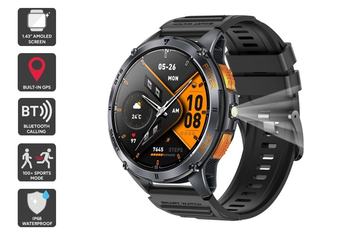 More than a fitness tracker, this smartwatch includes handy extras like a flashlight, vibration alarm and a calculator, giving you everything you need right on your wrist.