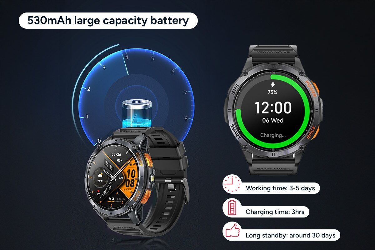 The powerful 530mAh battery delivers up to 5 days of regular use and up to 30 days of standby time. Fully recharge in just 3 hours and enjoy extended performance on long trips or training sessions.