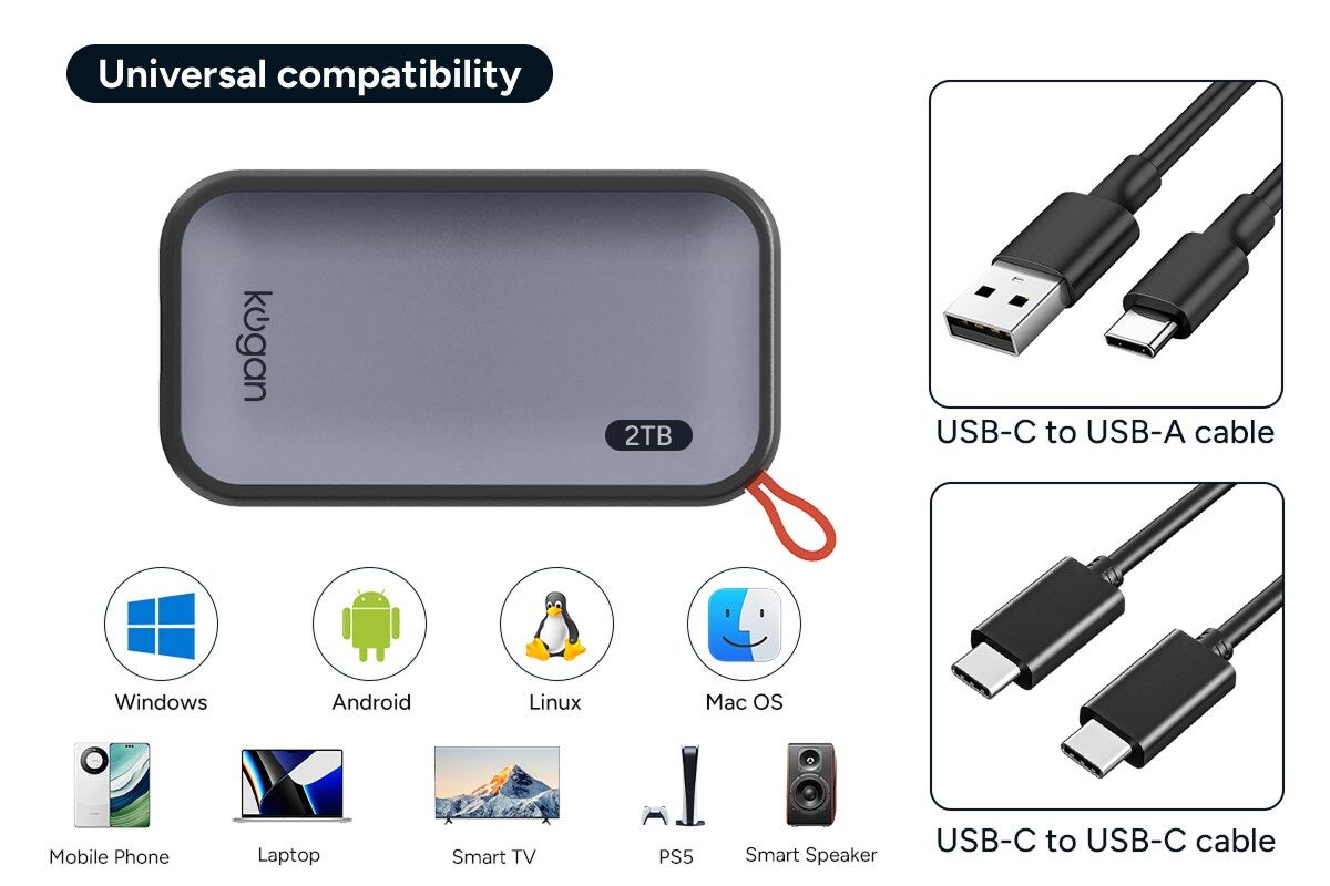 Store, back up and transfer your data in seconds with the Kogan™ Portable SSD. Combining ultra-fast speeds with a sleek, pocket-sized design, it’s the perfect portable drive for professionals, creators and everyday users who need reliable performance on the go.