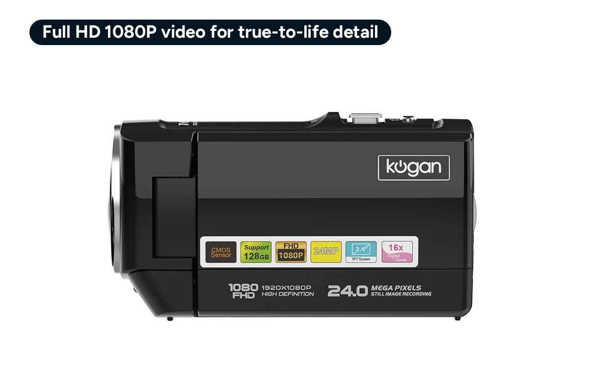 Capture life’s best moments in vivid clarity with the Kogan™ Full HD Digital Camcorder, delivering crisp footage, flexible shooting angles and creative features in a lightweight, easy-to-use design.