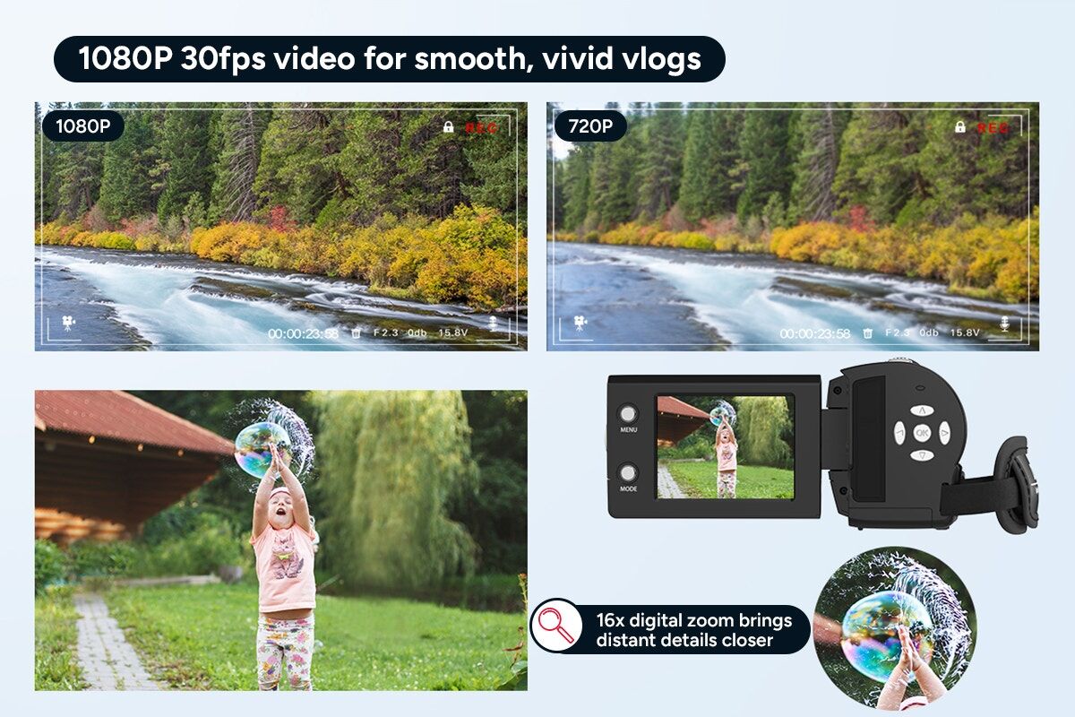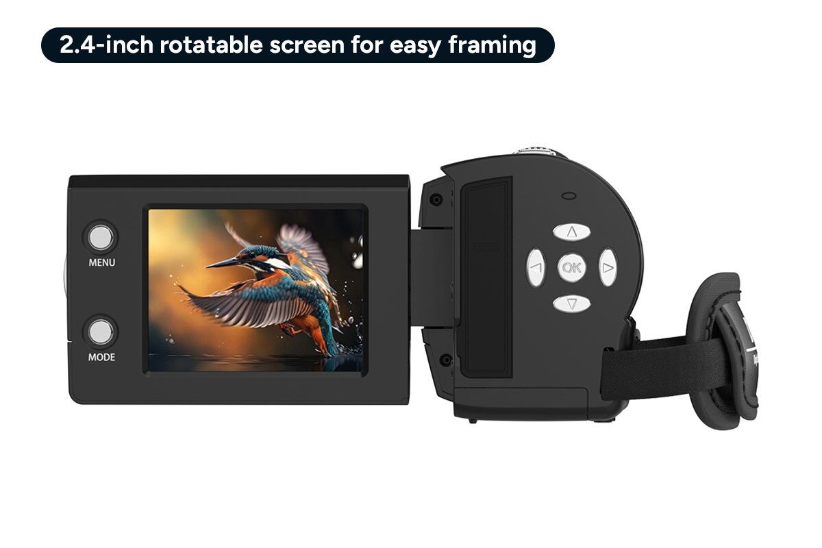 The 270-degree rotatable 2.4-inch screen makes framing simple from any position. It helps you find the best angle for vlogs, selfies, travel videos or capturing special moments like birthdays and graduations without awkward repositioning.