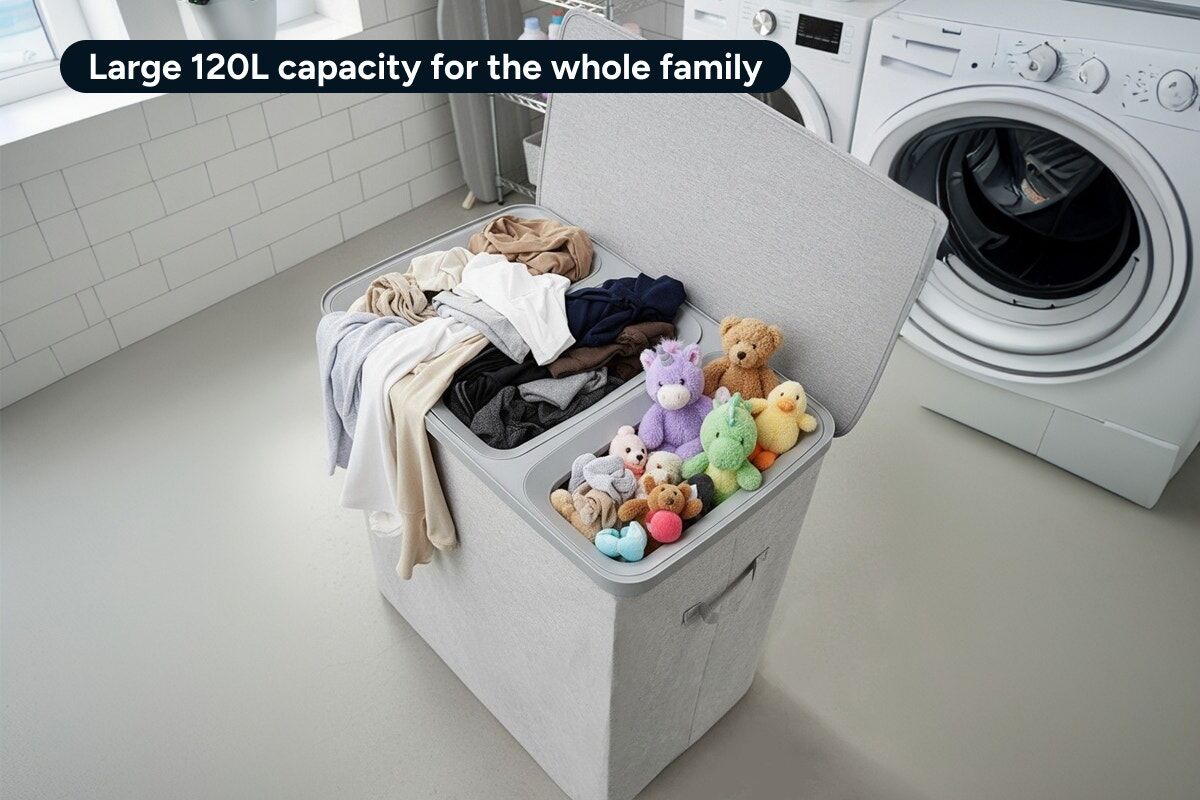 Make laundry day easy with the Ovela™ 120L Laundry Separation Basket with Lid. Featuring 3 sections for simple sorting, removable tote bags, and a sturdy build, it keeps your home tidy and takes the stress out of washing.