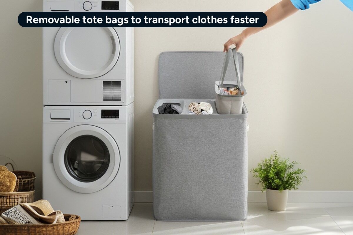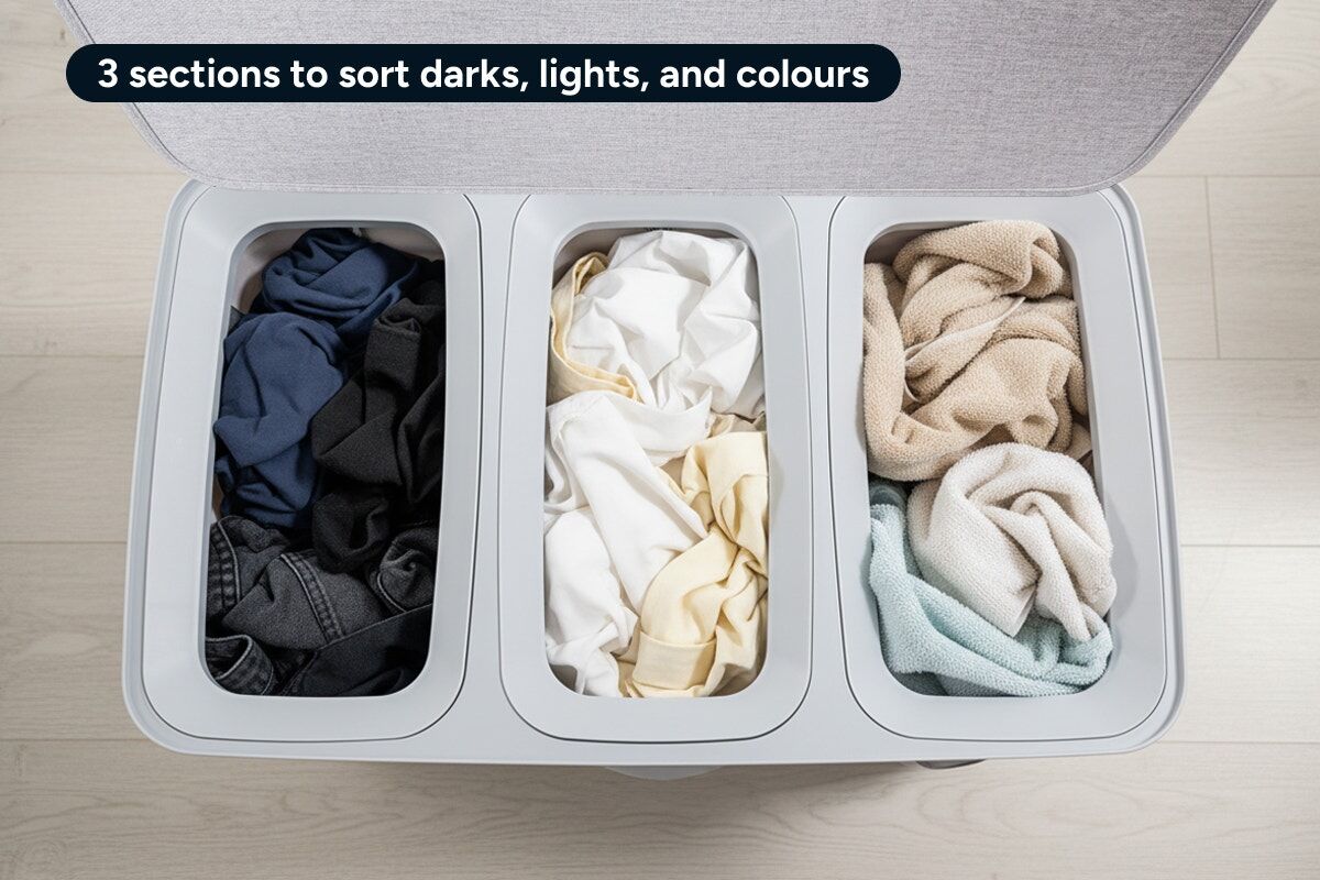 With 3 separate compartments, sorting lights, darks and colours becomes effortless, saving you time on wash day. Each compartment includes its own removable tote bag with handles, so you can grab what you need in an instant and carry it straight to the laundry, avoiding the hassle of hauling the entire basket or juggling armfuls of clothes.