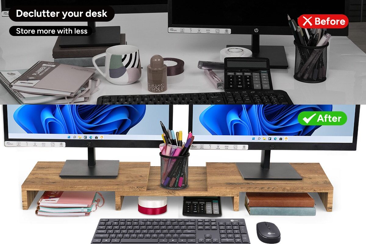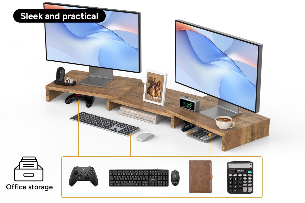 Sitting hunched over screens takes its toll. By elevating monitors by 10cm to eye level, this stand helps to reduce neck and back strain, making work or play more comfortable.