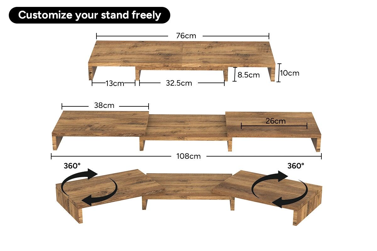 With an extendable length up to 108cm and freely adjustable side angles, this stand adapts to your desk and screen layout. The stand’s customisability makes it perfect for both compact desks and larger workstations.