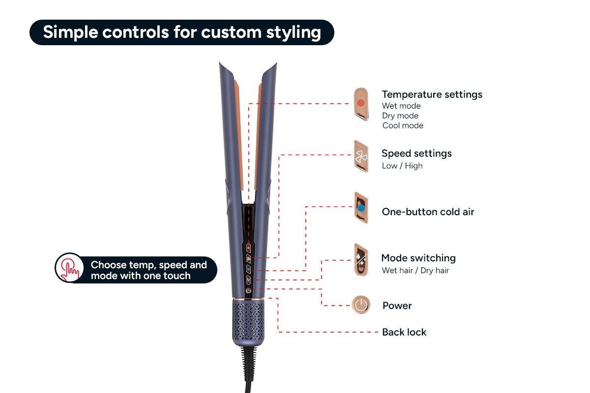 The high-speed 3-in-1 airflow system dries, straightens and styles at once, streamlining your routine without compromising on control. It replaces multiple tools with one powerful solution that delivers smooth, sleek results every day.