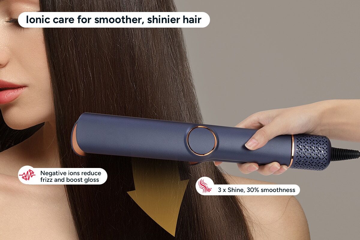 The powerful targeted airflow smooths cuticles and aligns each strand while you style. This ensures straighter, silkier results and helps reduce the roughness and flyaways typically caused by traditional hot plates.