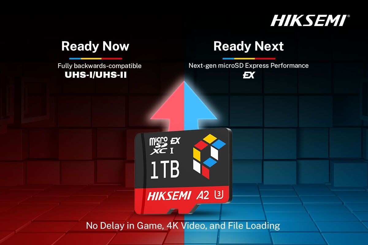 The HIKSEMI Express microSDXC Card delivers ultra-fast performance and high-capacity storage for next-gen handheld gaming. Powered by PCIe and NVMe™ technology, it unlocks ultra-fast speeds on compatible devices while continuing to provide reliable storage for today’s handheld gaming systems.