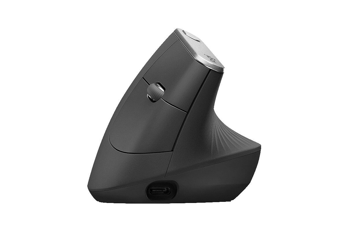 The Logitech MX Vertical Mouse is an ergonomic mouse that is designed to reduce muscle strain and improve posture. It has a unique 57deg vertical angle that minimises the pressure on your wrist, while your thumb is positioned comfortably on the thumb rest. The textured rubber surface assures a durable and natural grip. The cursor speed switch results in 4x less hand movement to reduce muscle and hand fatigue. The MX Vertical Mouse also features a best-in-class 4000 DPI high-precision sensor and a premium scroll wheel. It can be connected via the included USB-C charging cable, Logitech Unifying Receiver or Bluetooth.