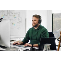 Stay productive while working from home with Zone Vibe 100, compatible with all popular meeting and calling platforms. The flip-to-mute, noise-cancelling microphone reduces background noise, ensuring your voice comes through clearly for smooth, professional communication.