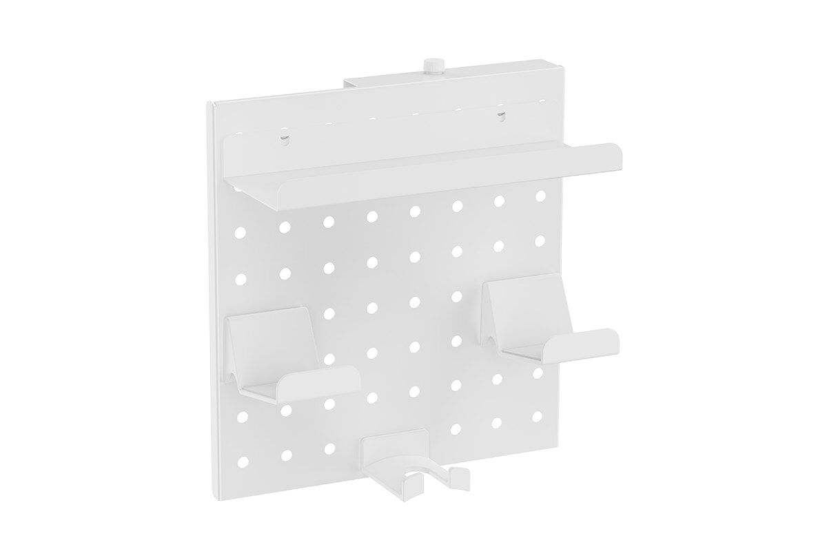 • Pegboard design. Rearrange hooks, shelves and holders to suit your gear.