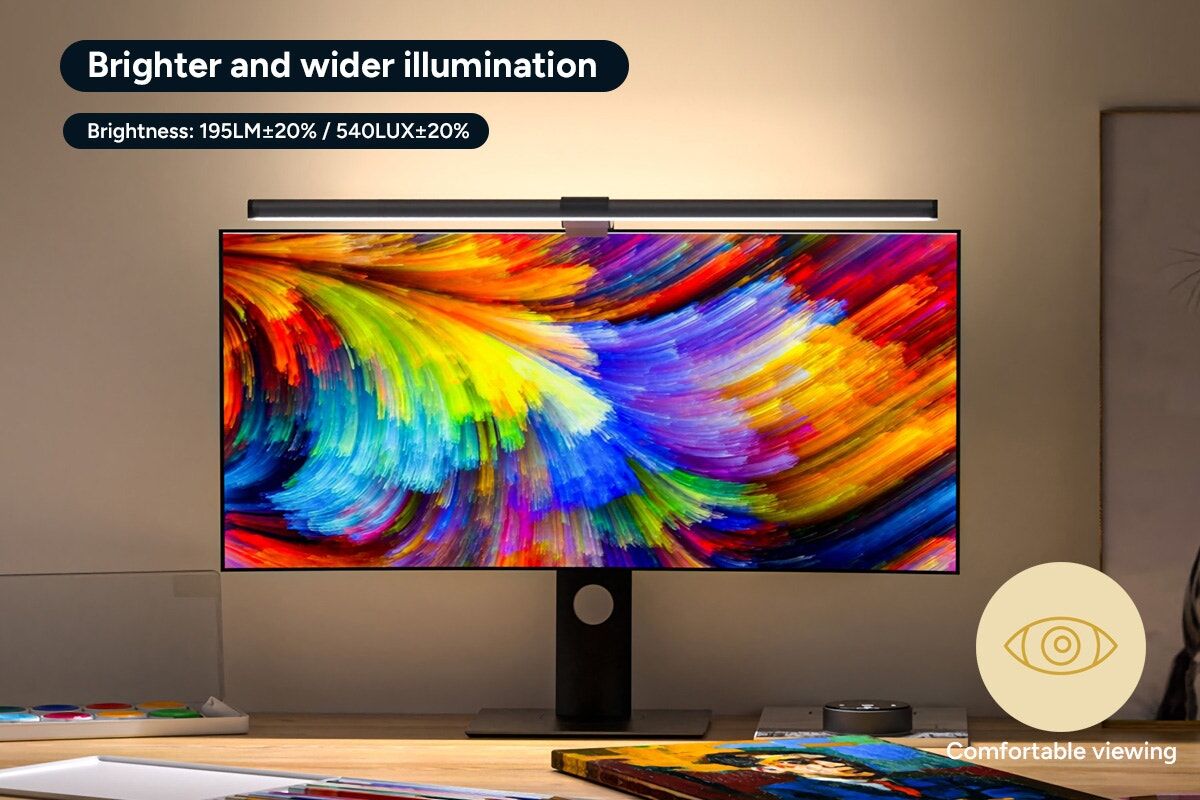With an extended 51cm lamp bar, this monitor light delivers broader and brighter coverage across your desk. It eliminates harsh shadows and uneven lighting, making long work, study or creative sessions more comfortable and productive.