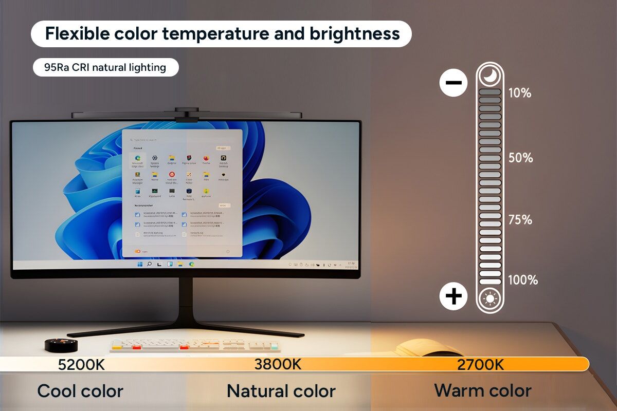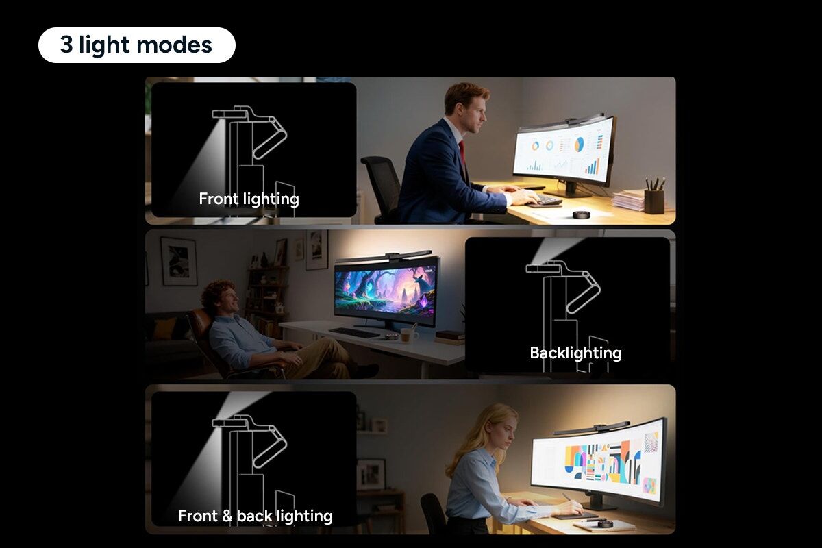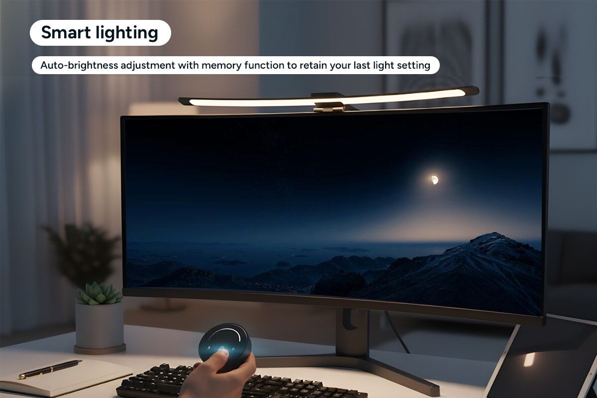 Built specifically for large ultrawide curved monitors, the extended 66cm light bar wraps evenly across your screen. The adjustable double-head design eliminates dark corners, giving you consistent illumination across your setup.