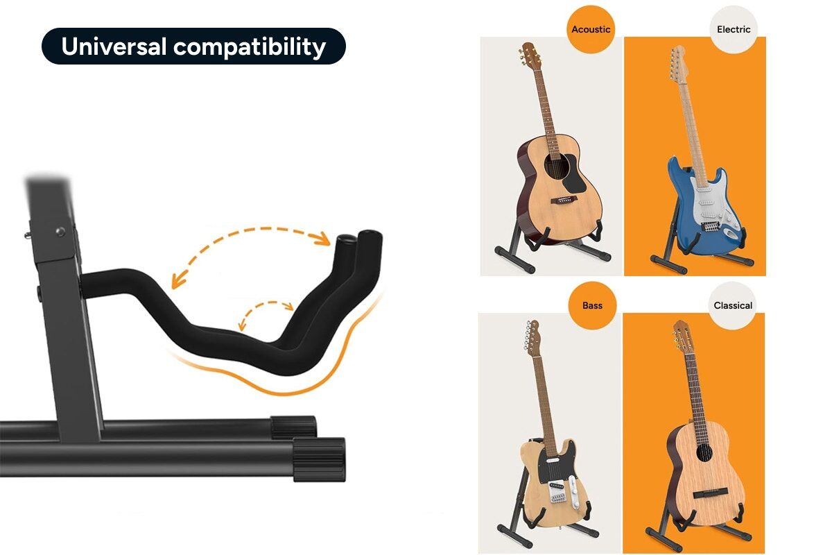 Designed to hold a wide range of guitar types, this stand keeps your instrument upright and secure. Whether it’s an electric, acoustic, classical or bass guitar, it provides dependable everyday support.