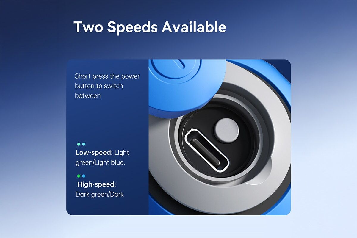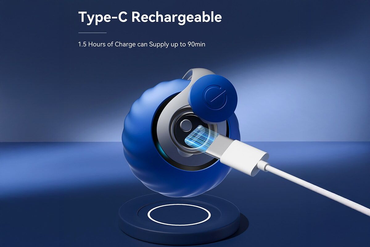 • Rechargeable via USB-C. Up to 90 minutes of continuous use on a single charge.