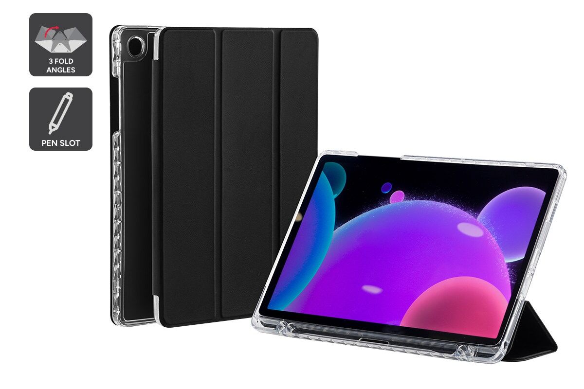 The tri-fold front cover transforms into a sturdy stand with two viewing angles, perfect for typing emails, watching videos or video calling hands-free. It adapts easily to how you use your tablet throughout the day.