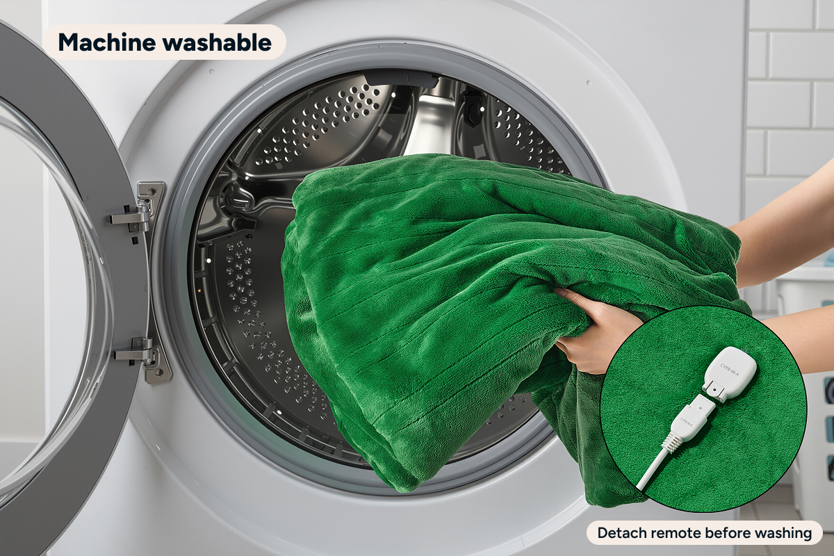 The removable remotes allow these blankets to be machine washable, making maintenance a breeze. Additionally, detaching the remotes makes it double as a regular blanket that is comfortable to use year-round.