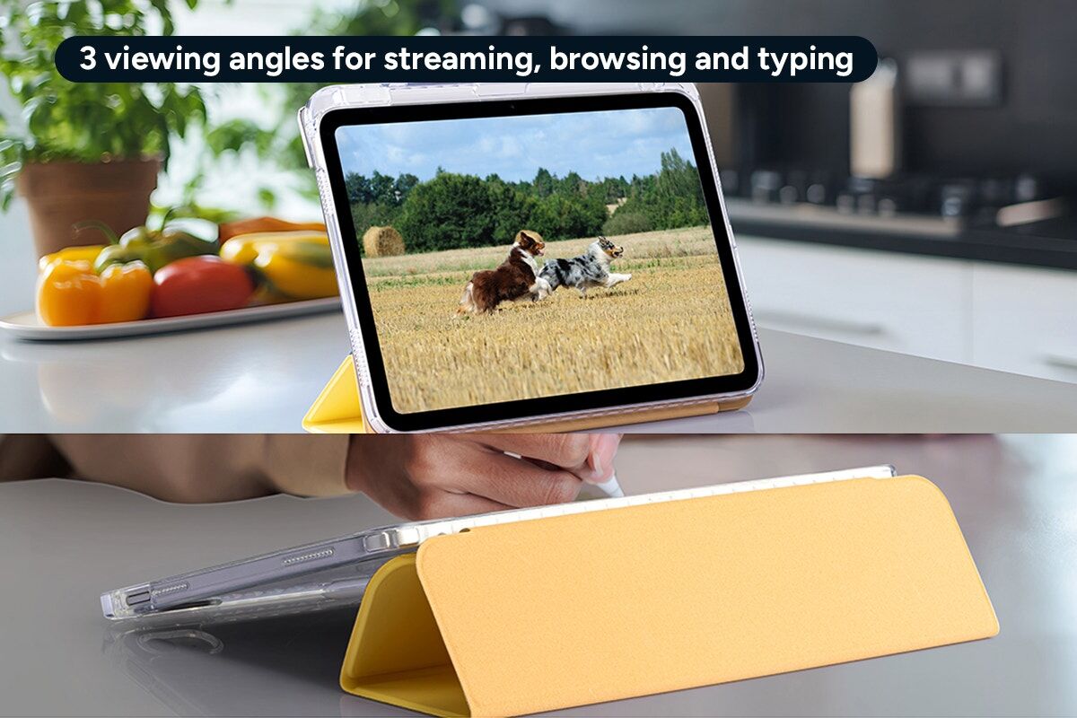 The sturdy tri-fold front cover easily adjusts into three viewing angles, making it perfect for typing, video calls, or streaming.
