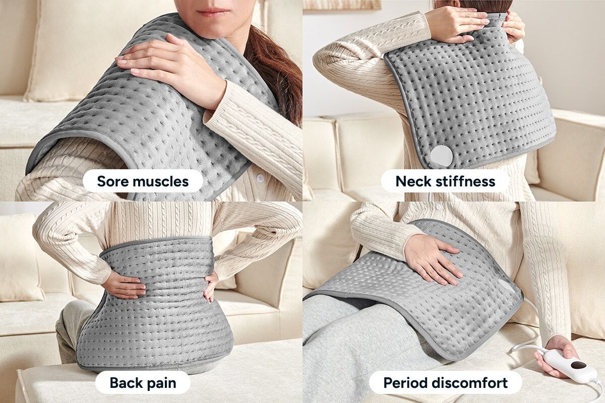 • Versatile use. Ideal for sore muscles, neck and back pain, and period discomfort.