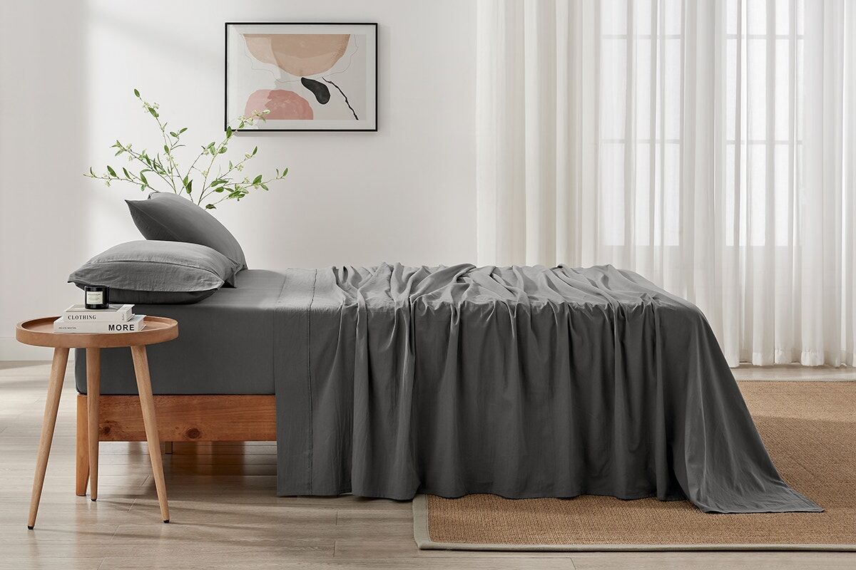 Sink into relaxed comfort with the Brosa™ Stonewashed Cotton Sheet Set, designed to feel soft, lived-in and inviting from the very first night. Made from breathable cotton with a beautifully textured finish, it creates a calm, effortless sleep space you’ll love coming home to.