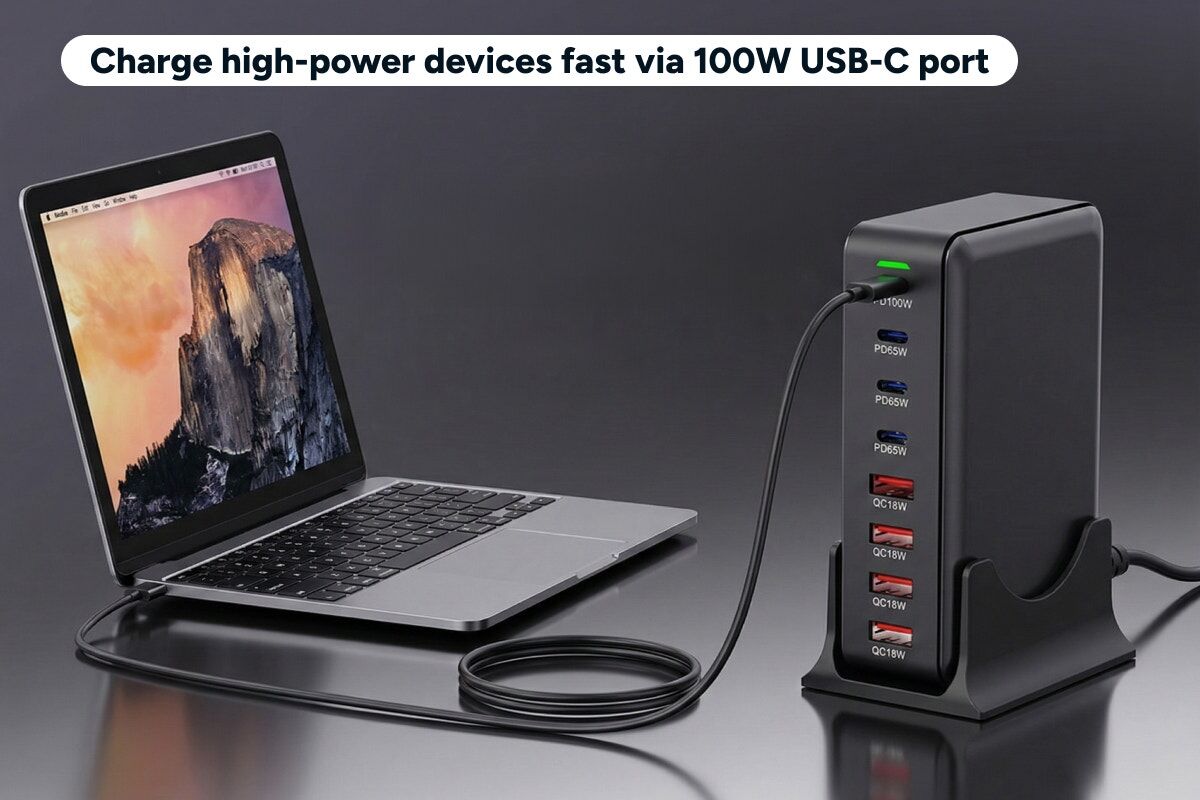 With 210W total output, you can charge multiple devices quickly at the same time. A single USB-C port provides up to 100W, delivering super-fast charging for power-hungry devices.