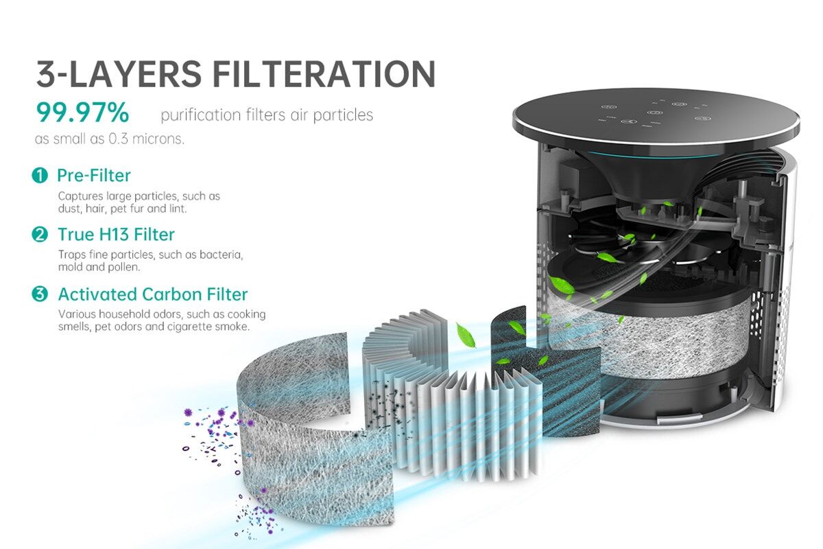 Designed with a high-efficiency H13 HEPA filter and activated carbon layer, this replacement filter helps trap dust, pollen and other airborne particles while absorbing unwanted smells. It keeps your purifier working effectively, so every breath feels noticeably cleaner.