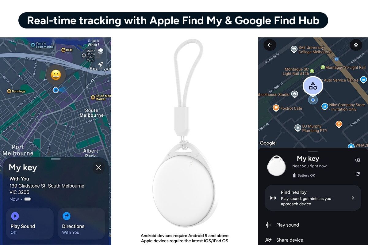 Fully compatible with both Apple Find My and Google Find Hub, it connects directly to your existing ecosystem. Track items from your iPhone, iPad or Android device with the same simple, intuitive interface you already use.