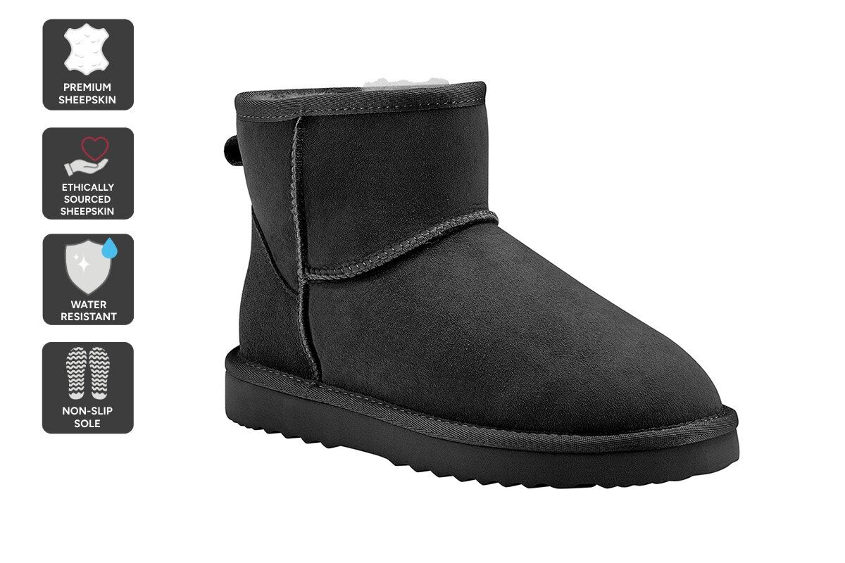 These boots are made from Australian sheepskin and are designed to be cosy and comfortable. The sheepskin is thick and luxurious, but also flexible and lightweight. The boots are also breathable, water-resistant, and have a non-slip sole.